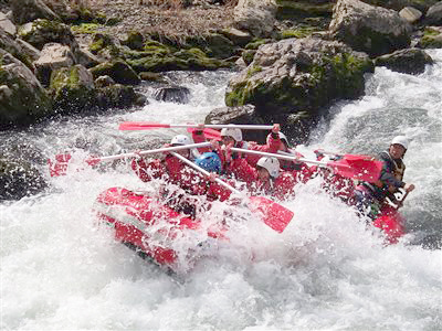 保津峡をラフティングボートに乗って安全に楽しく、保津川下りとはひと味違った川下りが体験できます。